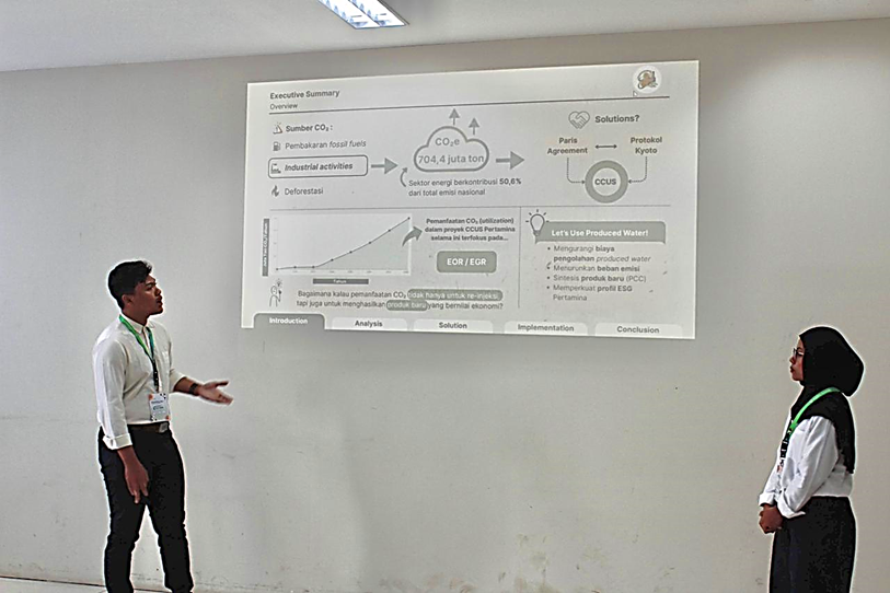 Selama kegiatan berlangsung, tim mempresentasikan solusi mereka di hadapan dewan juri dan mengikuti sesi tanya jawab terkait kelayakan proses, keberlanjutan, serta potensi implementasinya di industri. Mereka berhasil melaju hingga babak final bersama sembilan finalis lainnya dari berbagai universitas di Indonesia. Melalui kompetisi ini, peserta memperoleh wawasan mendalam mengenai teknologi Carbon Capture and Utilization (CCU) dan peluang pemanfaatan CO₂ di berbagai sektor industri, sekaligus meningkatkan awareness terhadap isu perubahan iklim dan transisi menuju industri dengan emisi nol bersih. Selain itu, kegiatan ini juga memperluas jejaring akademik dan profesional melalui interaksi dengan mahasiswa serta praktisi dari berbagai perguruan tinggi lain.